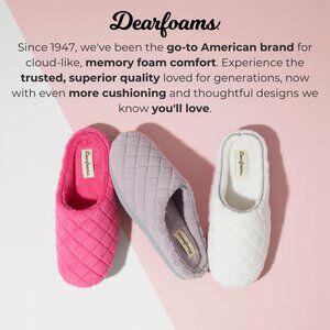 COZY MATERIALS: Indulge your feet in pure luxury! Our indoor/outdoor Leslie slipper comes in several comfy materials. Choose from velvety-soft velour, perfect for year-round comfort, or a lightweight chenille or knit, ideal for warmer months. TRUE COMFORT: Since 1947, we've been the go-to American brand for cloud-like, memory foam comfort. Experience the trusted, superior quality loved for generations, now with even more cushioning and thoughtful designs we know you'll love.