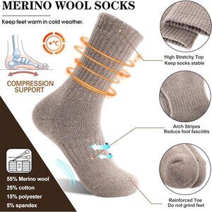 Womens Merino Wool Socks 5 Pairs Warm Thick Thermal Crew Cozy Winter Boot Socks