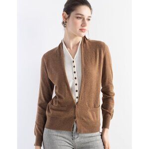 Women's Merino Wool Sweater Fake Two-Piece Cardigan Fall Winter V-Neck