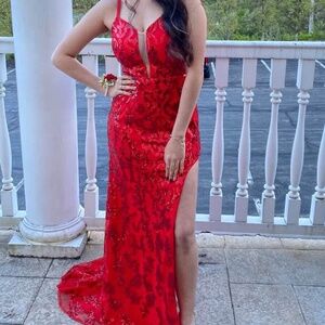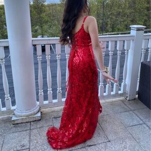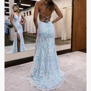 Women's Mermaid Sequin Prom Dress w/Slit Sparkly Lace