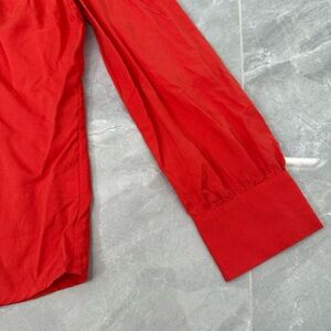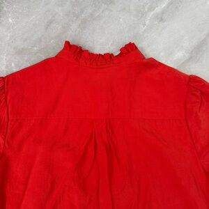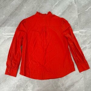 Good condition - Women’s Merona Target Ruffle Neck Button Tie Long Sleeve Shirt. Color: orange/red. Size: L.