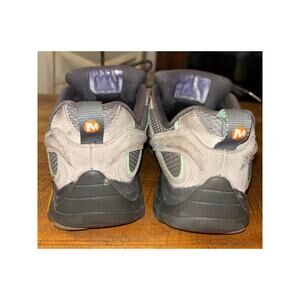 These shoes are in great pre-loved condition! No rips or tears. These Merrell hiking shoes have minor wear and just need cleaned, as they have signs of wear as expected in used shoes. The tread is in great condition! The size tag is a little worn, but they are a UK size 6.5 and a US size 9!