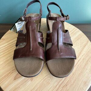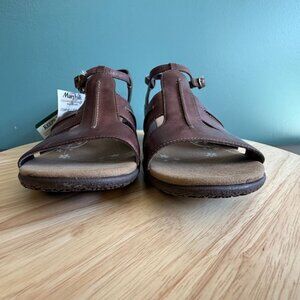 Women’s Merrell Viola Sandal 10 Leather Brown T Strap Vibram Wedge J46258
