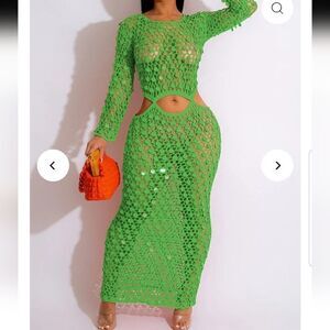 Women's Mesh Crochet Glitter Sequin Hollow Out Beach Maxi Dress Long B-2