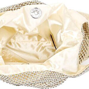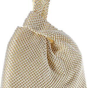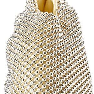 Features: Beautiful shiny mesh finish with ring top handles that can be carried as a clutch or handbag. Inside has a slip pocket, perfect for your phone, makeup, cash, and keys. Magnetic snap closure keeps everything secure. Stylish and sophisticated, ideal for weddings, formal events, or a romantic date.