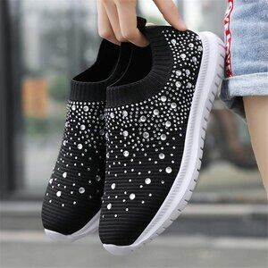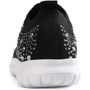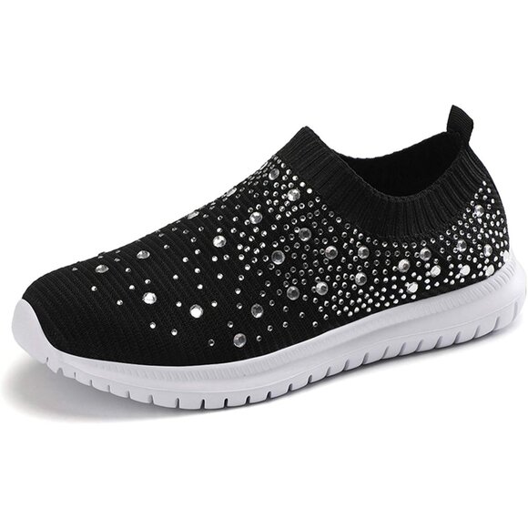 Women's Mesh Walking Shoes Rhinestone Glitter Slip On Ballroom Sneakers Black