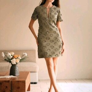 Women's Metal Decor Button 3D Laser Engraved Elegant Mini Dress