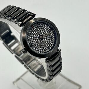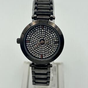 This stylish women's fashion watch features a metallic black finish and a crystal-accented dial. It's in great working condition with a new battery installed, so it's ready to wear and enjoy.