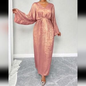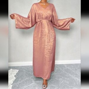 Women's Metallic Textured Batwing Sleeve Dress