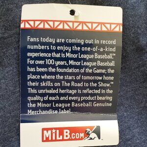 This cute team shirt is from the MLB Arizona Diamondback’s farm team in Hillsboro, OR. Show your team spirit at the game or anytime you want to look good supporting your home team. The Hops games are fun to watch and have a great following. This Minor League baseball team shirt has the genuine merchandise tag attached. The fabric blend of Polyester/Cotton/Rayon gives this shirt the super soft feel and durability to wear well. It features a fan-shaped V-neck in a nice heather blue with white stripes on the short sleeves and has the team name and mascot, ‘Barley’ on the front. Machine wash inside out in cold water on a gentle cycle. Tumble dry on a low setting or hang to dry. It measures approximately 17 inches from pit to pit and 27 inches from neck to hem in the back. “Go Hops!”