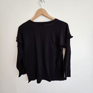 Women's Michael Kors Black Ruffle Long Sleeve Tee, Size S. Gold Logo