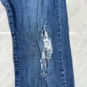 Good condition - Women’s Michael Kors Dillion Relaxed Distressed Jeans. Has button and zipper closure, three front pockets, and two back pockets. Colors: denim blue and gold. Size: 12.
