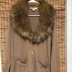 Michael Kors Cardigan (Size L) w/ Faux Fur Trim