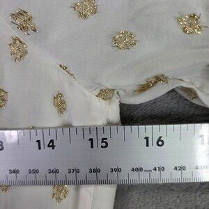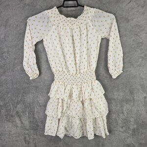 Womens Michael Kors Gold Metallic Polka Dot Smocked Ruffle Dress Viscose Blend S