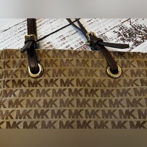 Michael Kors Jet Set North South Monogram Signature Jacquard Tote Bag
