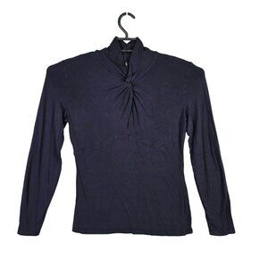 Womens Michael Kors Navy Blue Twist Front Top Long Sleeve Rayon Stretch Size M
