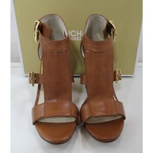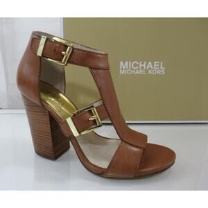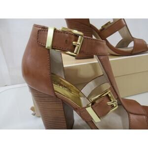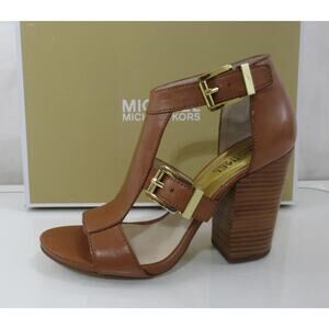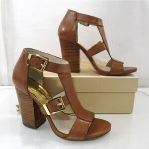 Women's Michael Kors Robin T-Strap Heels Sandals Leather Luggage Size 8.5