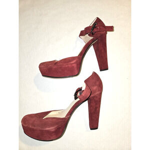 Womens Michael Kors Sierra Platform Heels Mary Jane Size 8 Suede Bordeaux/Red