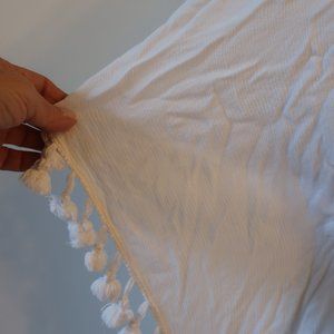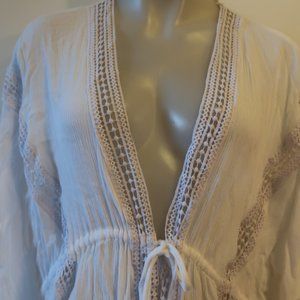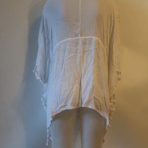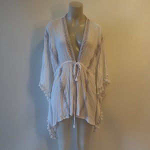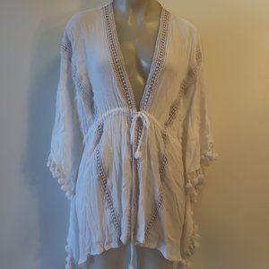 Womens Michael Stars White Crochet Trim Pom Pom Swim Coverup O/S *