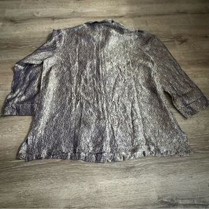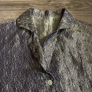 No Size Tag Fits Like a Small Beautiful Metalic Dark Eggplant Purple and Gold Shimmers and changes as you move. Collared Long Sleeve Button Down Shirt with Matching Elastic Waist Skirt. Michelle Garcia is a Cuban American Designer who has cultivated a reputation for creating transformative styles that blend energy with luxury. Every Michelle Garcia piece is handcrafted in Italy. This is a unique one of a kind set that can be worn together or separately.