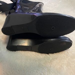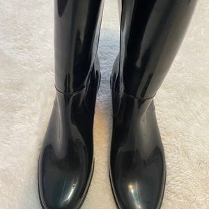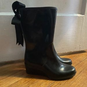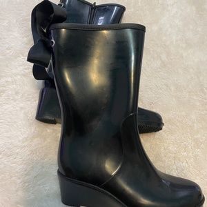 Womens Mid Calf Rubber Waterproof Wedges Black Rain Boots Size 8.5