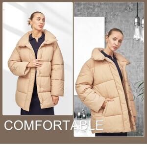Women's Mid Down Jacket, High Collar Warm Puffer