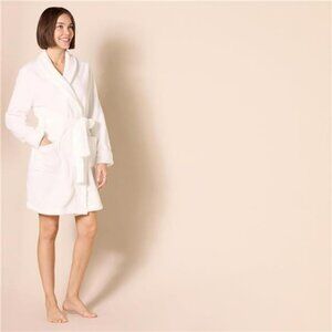 MID-LENGTH PLUSH ROBE: This super soft robe provides the ultimate comfort when drinking your early morning coffee or winding down after a day at work. Style back to Amazon Essential's Slippers to keep your feet snuggled and warm.