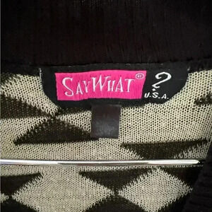 Women’s fashionable mid length sweater with an asymmetrical design, it’s in good used condition and is a size small .