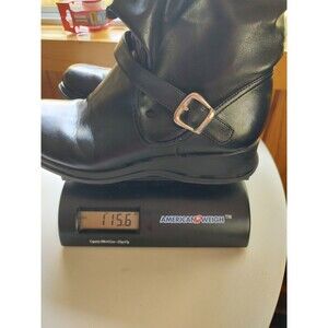 Women's Mid Rise Black Boots Size 6 Slip On Side Zipper Buckle GOOD COND Wedge