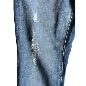 Womens Mid Rise Skinny Jeans Size 00 Blue Distressed Raw Hem Sculpting Stretch