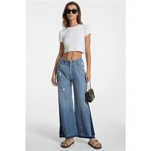 *Women's wide leg flared jeans, made of sturdy and durable high-quality denim, comfortable to wear and long-lasting.