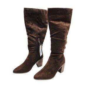 Womens Mid-Calf Brown Suede Block Heel Boots Size 9 With Side Zipper target