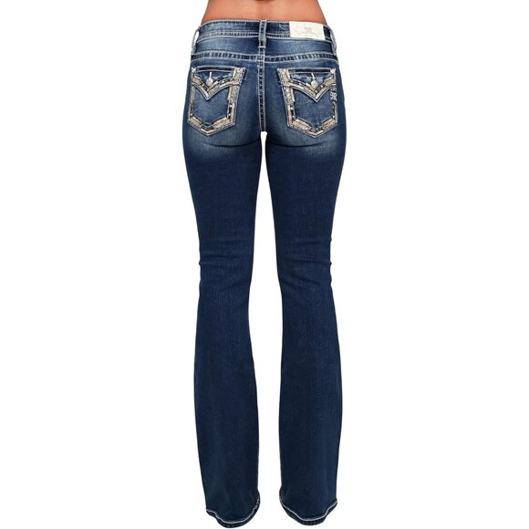 Women's Mid-Rise Faux Flap Pockets Bootcut Jeans 25W X 34L Cotton Blend