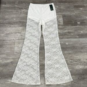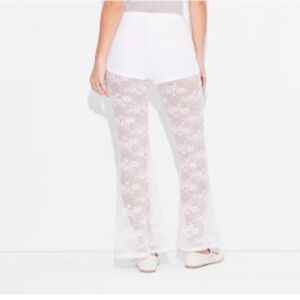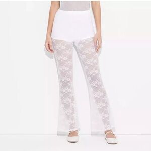 Women's Mid-Rise Flare Sheer Lace Beach Summer Pants -in White Wild Fable