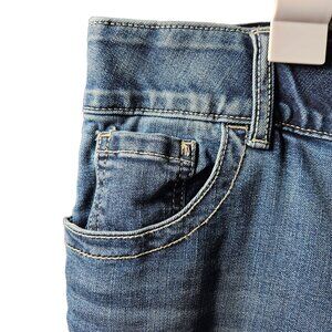 Classic skinny jeans offering a timeless look with a mid-rise fit. Cross-stitch detail on pockets adds a unique touch.