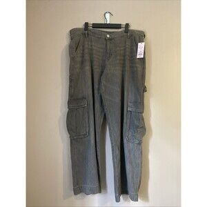 Women's Mid-Rise Wide Leg Cargo Baggy Jeans - Wild Fable Gray Wash 16 NWT