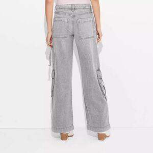 Elevate your wardrobe with these stylish Women's Mid-Rise Wide Leg Cargo Baggy Pants from Wild Fable. The gray wash denim fabric is made of 66% cotton, 20% recycled cotton, and 14% lyocell, making it durable and sustainable. The pants feature a fly button and zipper closure, as well as regular and cargo pockets, making them both practical and fashionable. The wide-leg and baggy fit is perfect for any season, whether it's fall, spring, summer, or winter. The pants have a 31-inch inseam and a 32-inch waist size. The pants are machine washable, making them easy to care for. Add these versatile jeans to your collection today!