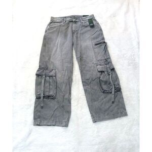 Women's Mid-Rise Wide Leg Cargo Baggy Pants (Size 12) GRAY WASH - NEW!!!