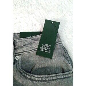 Elevate your wardrobe with these stylish Women's Mid-Rise Wide Leg Cargo Baggy Pants from Wild Fable. The gray wash denim fabric is made of 66% cotton, 20% recycled cotton, and 14% lyocell, making it durable and sustainable. The pants feature a fly button and zipper closure, as well as regular and cargo pockets, making them both practical and fashionable.