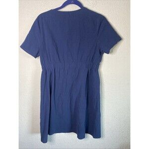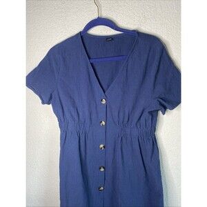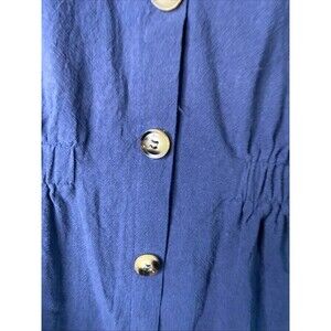Womens Midi Button Front Dress V Neck Cinch Waist L Blue Chore Lagen Cottage
