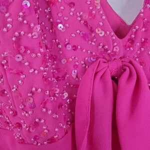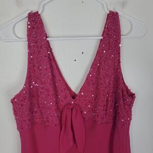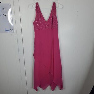 Womens Midi Dress Sequin Babydoll Empire Waist Asymmetrical Hem Evening 12 Pink