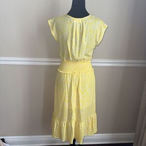 Women’s Midi Dress V Neck Yellow Floral Soft Romantic Size Small Spring Summer
