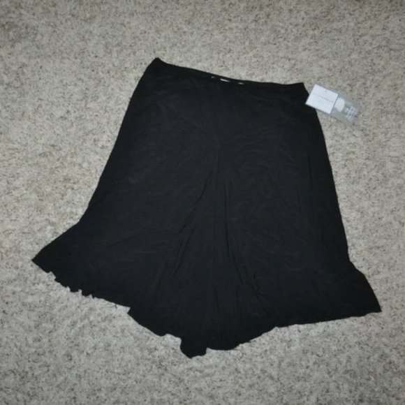 Womens Midi Skirt Black XL Petite Elastic Waist Lined Pleated Sag Harbor
