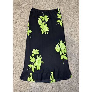 Womens Midi Skirt Floral Pull-On Elastic Waist Micro Pleats Fairy Grunge Sz 10