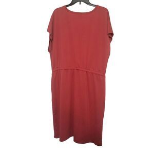 Short Sleeve Womens Dress with drawstring center. Side pockets. V-neck