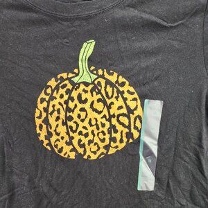 Womens Mighty Fine Black Leopard Print Pumpkin T Shirt Short Sleeve Halloween M