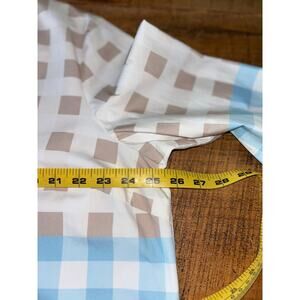 Womens Ming Wang Ruffled Cotton Gingham Blouse Blue Tan 3/4 Sleeve Size XL