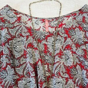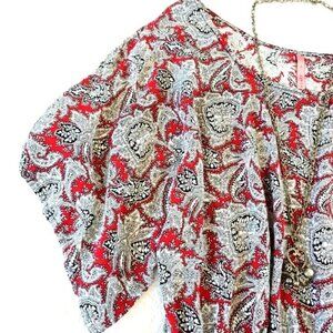 Women's Mini Dress Size Small Red Paisley Flowy Cold Shoulder Bohemian Vacation