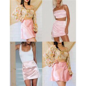 Womens Mini Skirts High Waisted Skirts Stain Light Pink