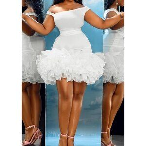 Women's Mini Tutu Dress Off Shoulder Lace Ruffles Cocktail Party Wear